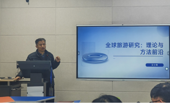 讲座中,吴士锋副教授首先系统阐述了当前国际旅游研究的前沿趋势。他指出,研究正从传统的小数据分析转向大数据与小数据的结合应用,单一的研究方法也逐渐被更具说服力的混合模型所取代,同时,综合运用文字、图像等多种数据的多模态研究也日益兴起。
