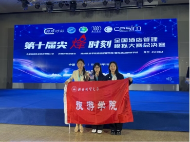 12月5日至7日,第十届“尖烽时刻”酒店管理模拟大赛全国总决赛在桂林旅游学院举行,来自46所院校的47支团队进入决赛。我院教师贾一诺指导的酒店管理系学生团队高佳薇、宁雨轩、李汶研,在经过模拟运营、商业演示、英文演讲等环节的激烈角逐后,荣获全国二等奖的优异成绩。
