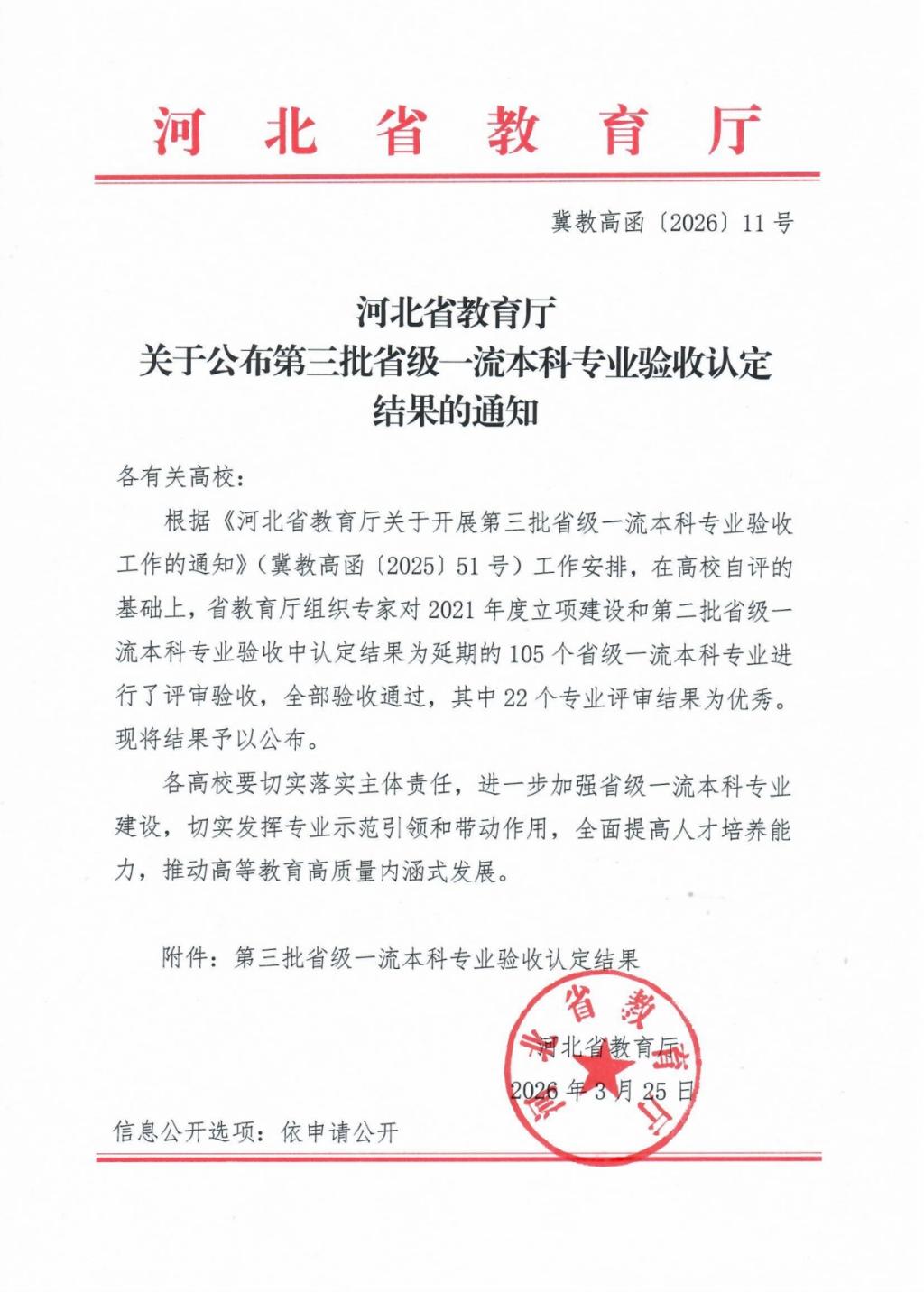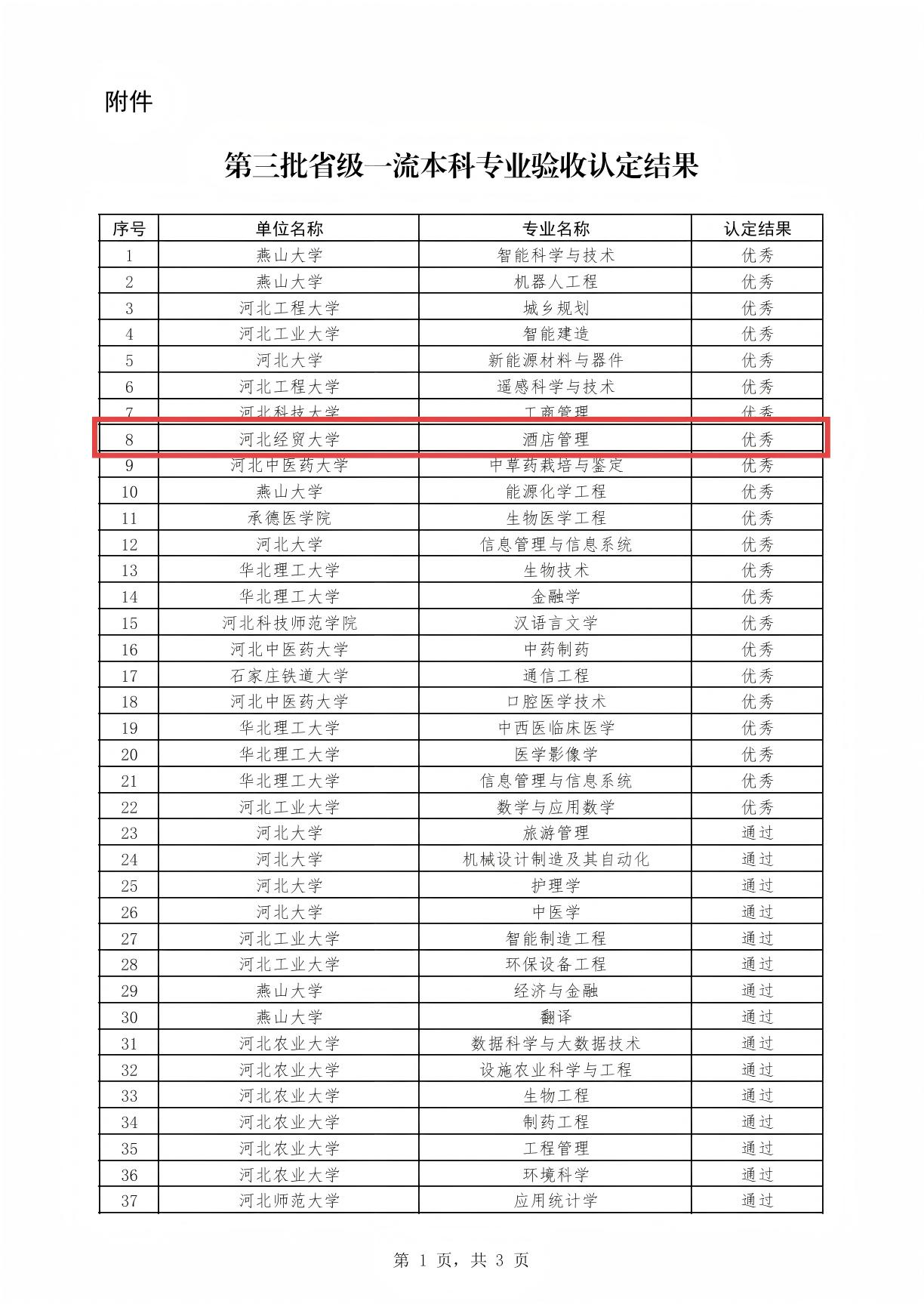 近日,河北省教育厅发布第三批省级一流本科专业验收认定结果,我院酒店管理专业顺利通过省级一流本科专业验收,并获评全校唯一“优秀”验收结果。这是对专业教育理念、教学模式及人才培养成效的肯定。